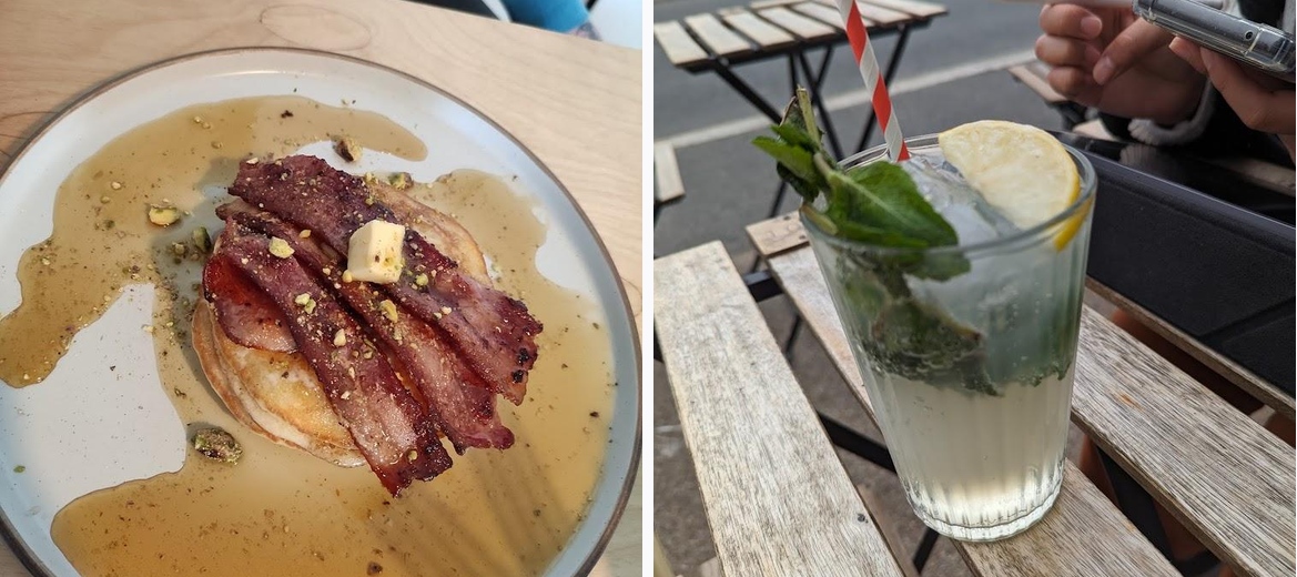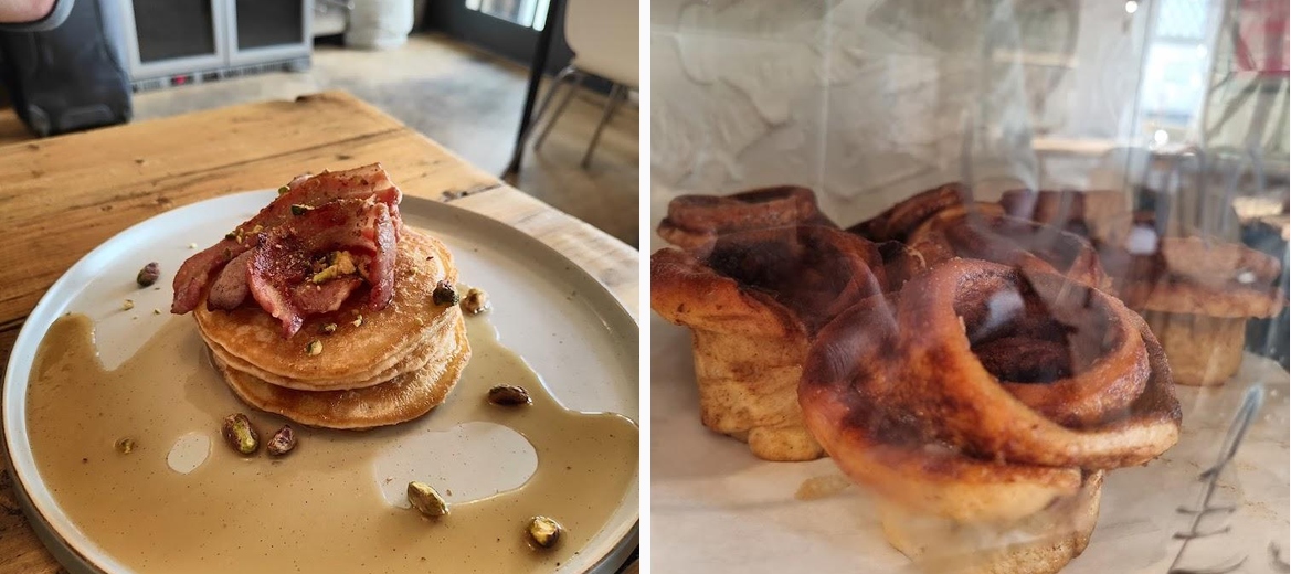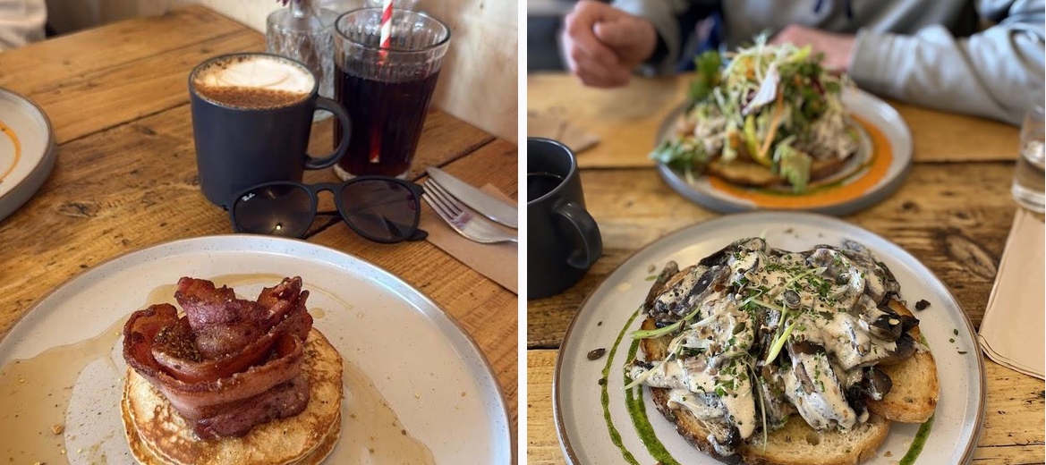 Don’t miss the Moroccan Inspired Shakshuka with Sourdough Toast and the Fluffy Buttermilk Pancakes. They’re crowd favorites and truly embody the café’s modern British brunch style.